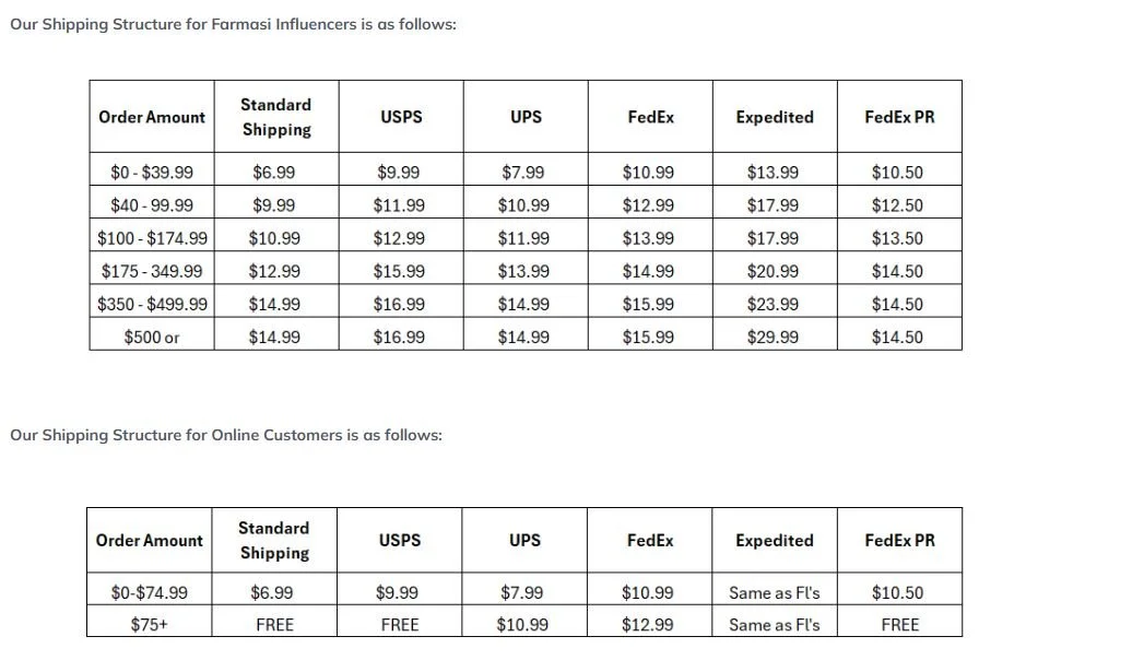 Danas Cosmetics preferred shipping vendors are USPS Priority, FedEx Home Delivery, UPS and DHL Expedited. You are able to choose your own carrier and shipping speed. If you select Standard Shipping, Farmasi will determine the company to ship with. Farmasi reserves the right to change the delivery company to a higher pace / quality service due to operational reasons.